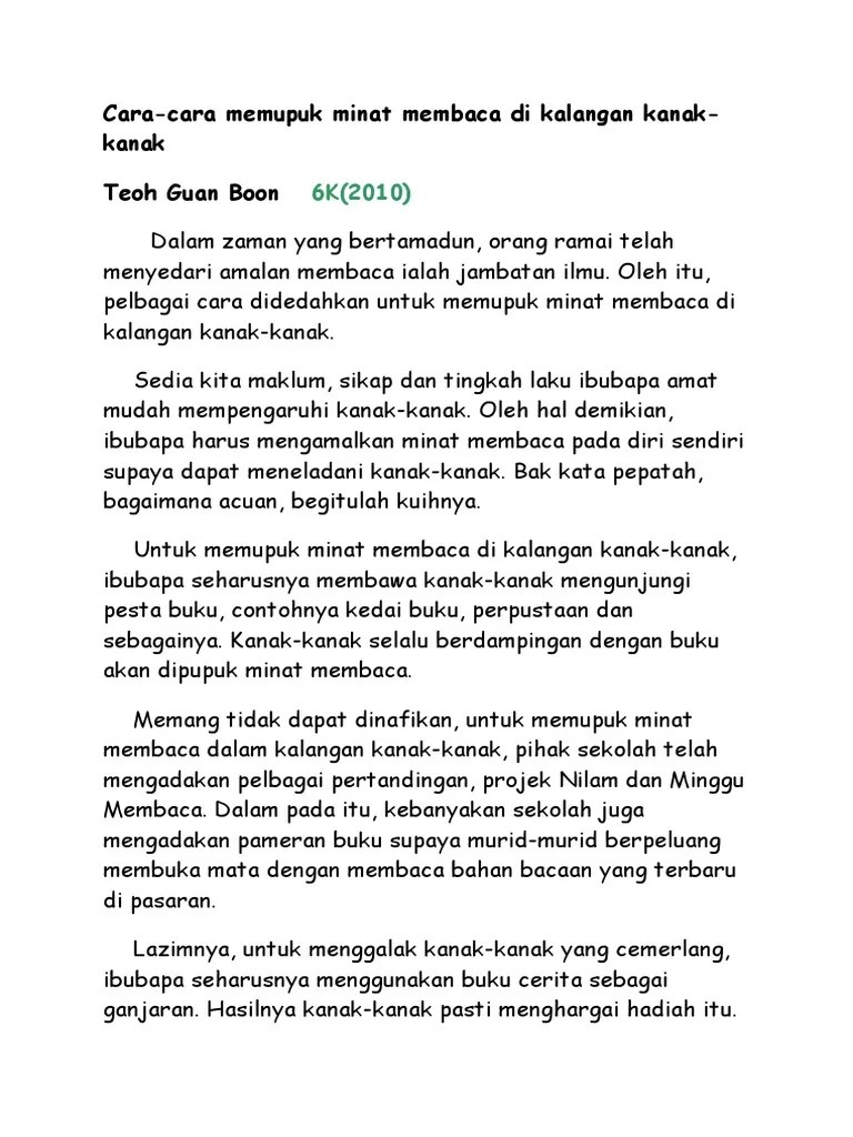 Pada realitinya, budaya membaca dapat meningkatkan ilmu pengetahuan yang ada pada seseorang induvidu. Contoh karangan spm kebaikan koperasi sekolah pada era ledakan maklumat dan dunia yang pesat . Sebagai rujukan kepada pelajar, berikut dikongsikan contoh karangan kepentingan amalan . Contoh karangan spm kepentingan amalan membaca soalan: Dapatkan buku latihan spm untuk semua subjek termasuk bahasa melayu termurah disini. Huraikan kepentingan membaca terhadap remaja. Minat membaca merupakan amalan yang berfaedah kepada masyarakat terutamanya remaja. Amalan membaca sangat penting dalam kehidupan seharian kita bagi melahirkan generasi yang berintelektual. Sudah terang lagi bersuluh membaca lebih banyak membawa kebaikan. Kehendak soalan · calon perlu menghuraikan kepentingan amalan membaca. 8 paragraphs, 1061 words cara memupuk budaya membaca dalam menempuh kehidupan era milenium yang penuh kontroversi ini, secara sedar atau tidak. Bagi penulisan karangan bahasa melayu, pelajar perlu menulis pelbagai jenis tajuk .